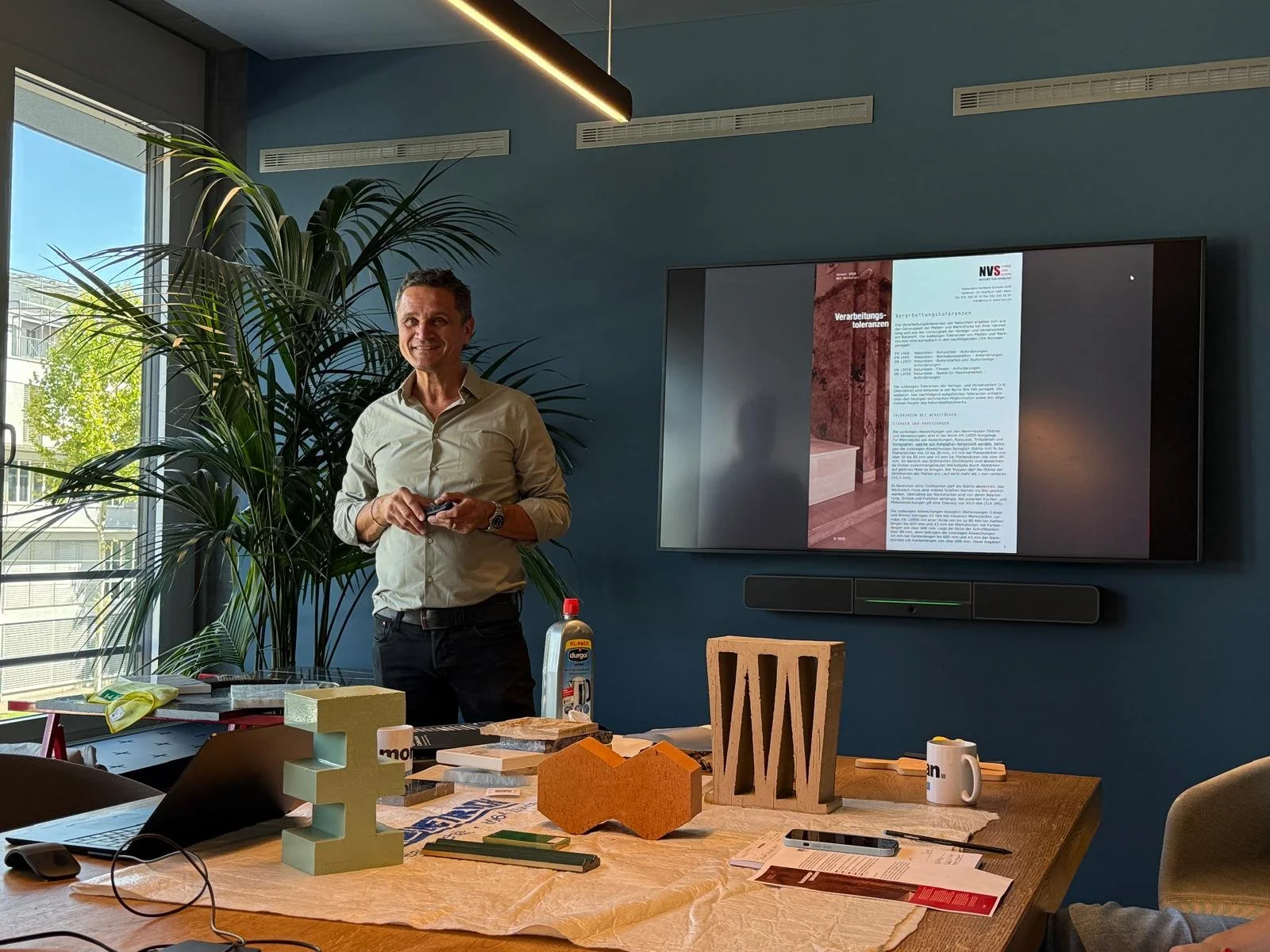 Wir kommen gerne zu Ihnen ins Büro und teilen unser Wissen direkt vor Ort. In unseren Präsentationen und Workshops zeigen wir nicht nur aktuelle Materialien, sondern auch Entwicklungen in der Branche. Wir geben Einblicke, Inspiration und Orientierung – genau dort, wo Sie arbeiten.